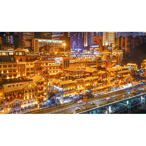 - Phố Cổ Hồng Nhai Động - Khu phố cổ 11 tầng lầu với mái ngói rêu phong, hoa văn chạm trổ, phía sau là những tòa nhà chọc trời, nằm ở khu trung tâm thương mại thành phố Trùng Khánh, bên bờ sông Dương Tử, là điểm bờ sông giao nhau của hai con sông Trường Giang và sông Gia Linh.