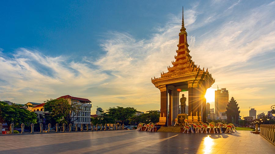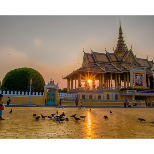 - Hoàng Cung Sihamoni Giữ vai trò là nơi ở của Hoàng Gia Campuchia và cũng là nơi tiếp đón các phái đoàn nước khác đến thăm Vương Quốc Campuchia, cung điện thu hút sự chú ý với kiến trúc bao mái bằng vàng lấp lánh nổi bật rõ rệt trên nền trời Phnom Penh.