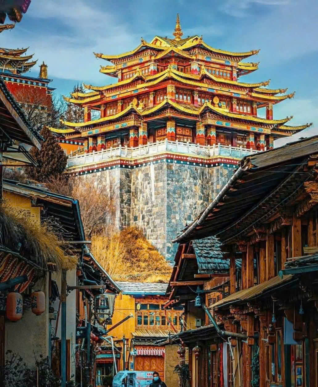 -  Làng văn hoá Tây Tạng (Tạng Trại) - Cửa hàng Tịnh Thổ A Bá: nơi quý khách có thể thưởng thức phong cách kiến trúc kiểu Tây Tạng, những bức tranh đầy màu sắc, trang phục Tây Tạng, trải nghiệm cuộc sống hàng ngày của người Tây Tạng và mua sắm những món đồ bạc, dược liệu do người Tạng làm ra.
